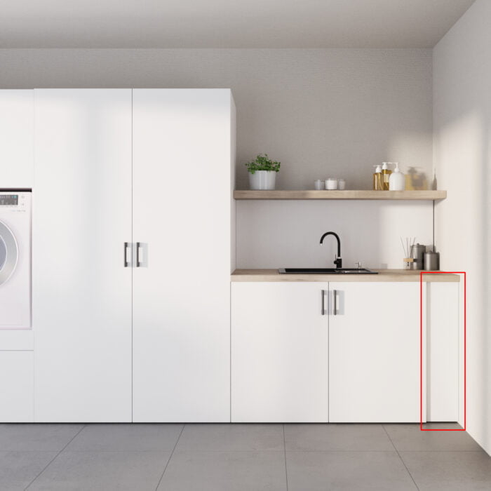 De passtrook van 85 cm is te gebruiken voor het opvullen van eventueel extra ruimte bij de onderkasten.