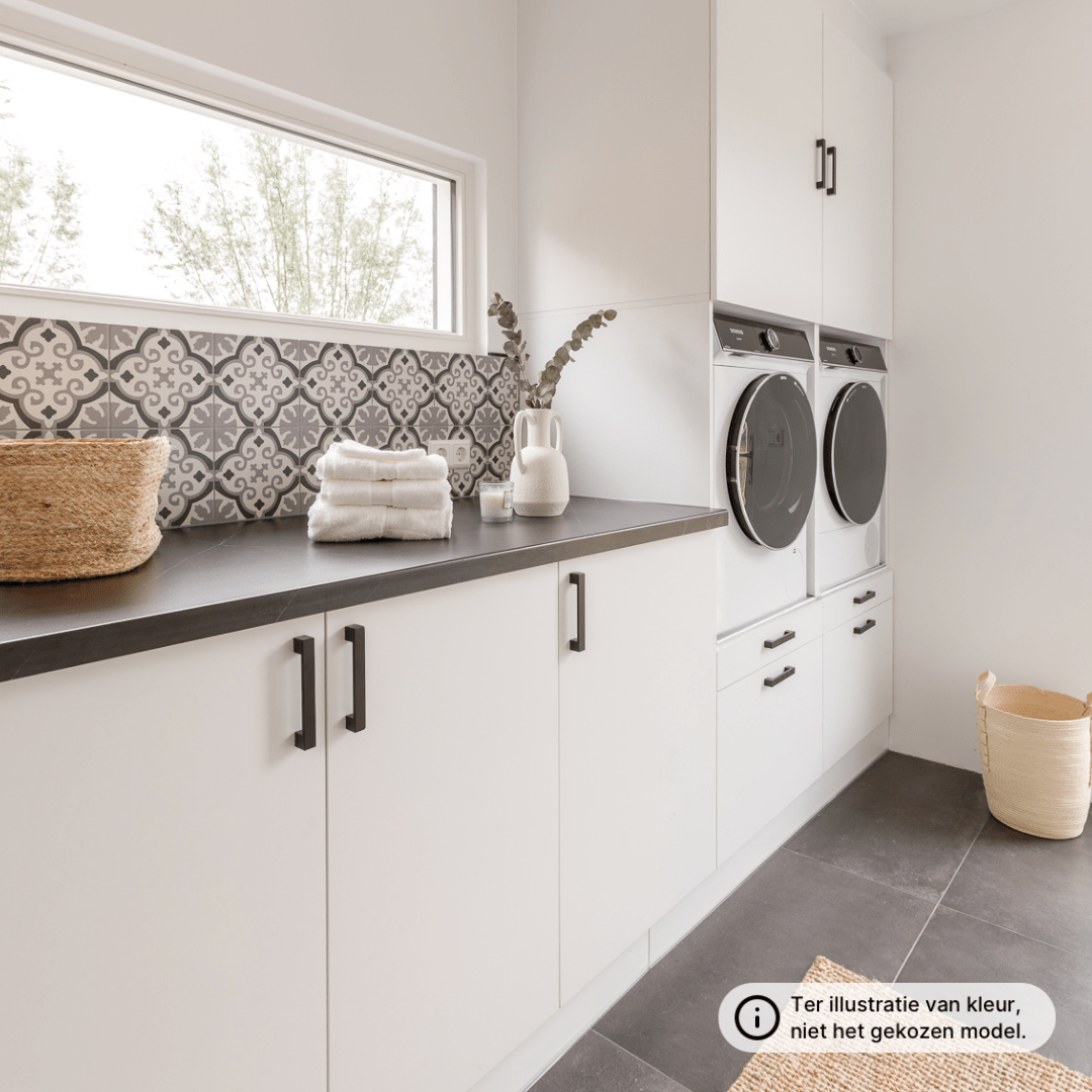 De stevige constructie van onze waskasten zorgt ervoor dat de trillingen van de wasmachine en droger worden geabsorbeerd. Ook werkt de constructie als geluidsdemper en zul je dus geen geluidsoverlast meer ervaren van de machines.